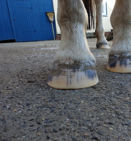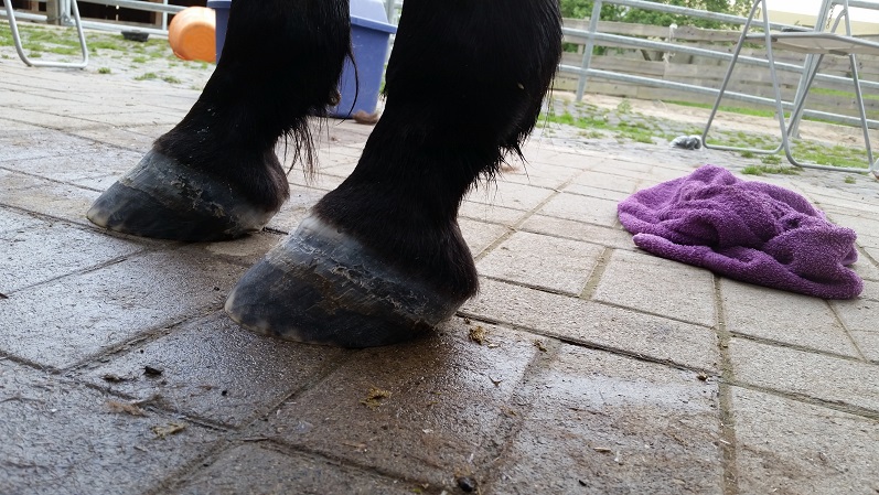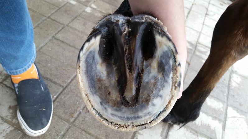 Eine junge Frau sprach mich an, als ich auf dem Hof war zum Hufe machen. Sie Fragte ob ich mir mal ihren Wallach anschauen könnte. Ich staunte nicht schlecht. Die Hufe waren in meinen Augen eine absolute Kathastrophe. Sie sagte mir, das ihr Schmied ihr sagte, man kann daran nichts ändern und es wäre ja auch gar nicht so schlimm. Ich erklärte ihr diverses was bei ihrem Großen sanftmütigen Wallach im argen lag an seinen Hufen. Kurz drauf machten wir einen Termin und ich nahm ihm die Eisen ab. Frauchen besorgte umgehend Hufschuhe, die er dann auch viel getragen hat in der Umstellphase. Izoard hat noch mehr Baustellen, u.a. Cushing, Copd und er ist auch nicht mehr der jüngste. Mit einem Stockmaß von etwas über 1,70 ist er zudem ein wirklich großer Kerl.